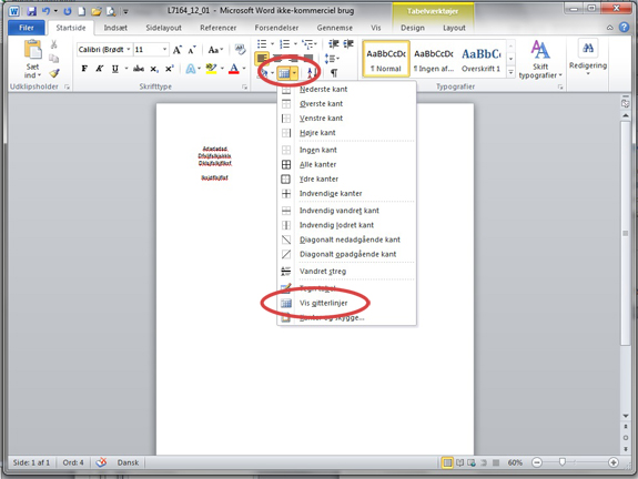 Se følgende video, og/eller de nedenstående klip fra samme video, der forklarer, hvordan skabelonerne bruges i Microsoft word 2010 og 2007 (på en Mac Microsoft office 2011). Vær opmærksom på, at resultatet også er afhængig af printerens kvalitet, og at printeren ofte skubber papiret lidt, så det bliver en anelse skævt på den lodrette led. Det er ofte en fordel at benytte printerens indføringshul i stedet for papirbakken.